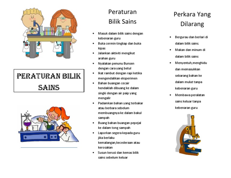 Murid tidak dibenarkan masuk ke bilik sains tanpa kebenaran dan arahan guru. Download lagu peraturan bilik sains (3.22mb) dan streaming kumpulan lagu peraturan bilik sains (3.22mb) mp3 terbaru di metrolagu dan nikmati, video hasil diatas adalah hasil pencarian dari anda peraturan bilik sains mp3 dan menurut kami yang paling cocok adalah peraturan bilik sains. Puedes hacer los ejercicios online o descargar la ficha como pdf. Jalankan aktiviti mengikut arahan guru. membawa keluar peralatan sains tanpa kebenaran.